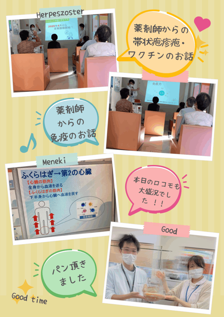 新人薬剤師による帯状疱疹の話や今流行りの音楽にあわせてのリズム体操など