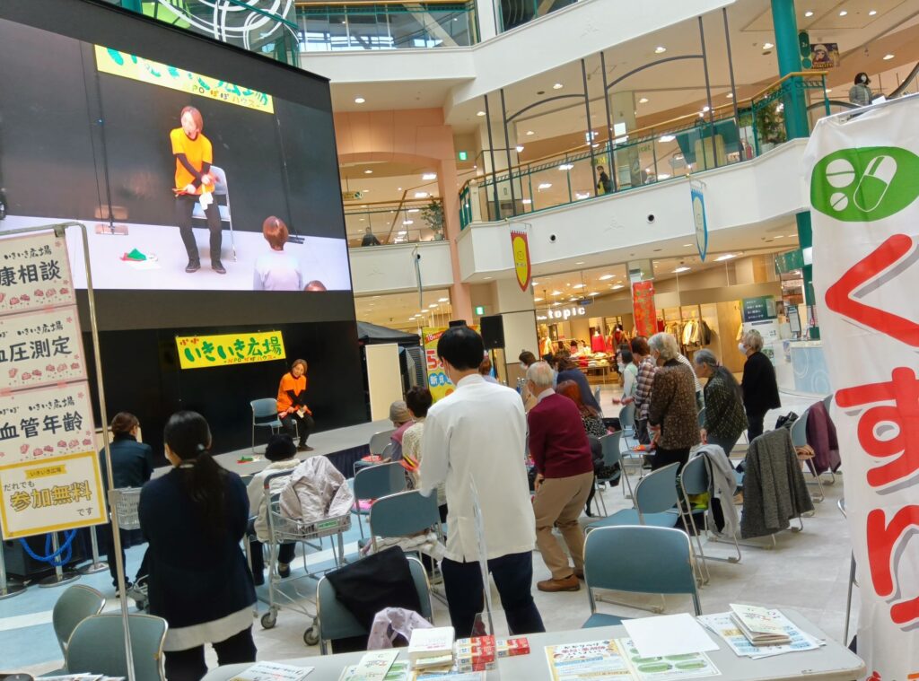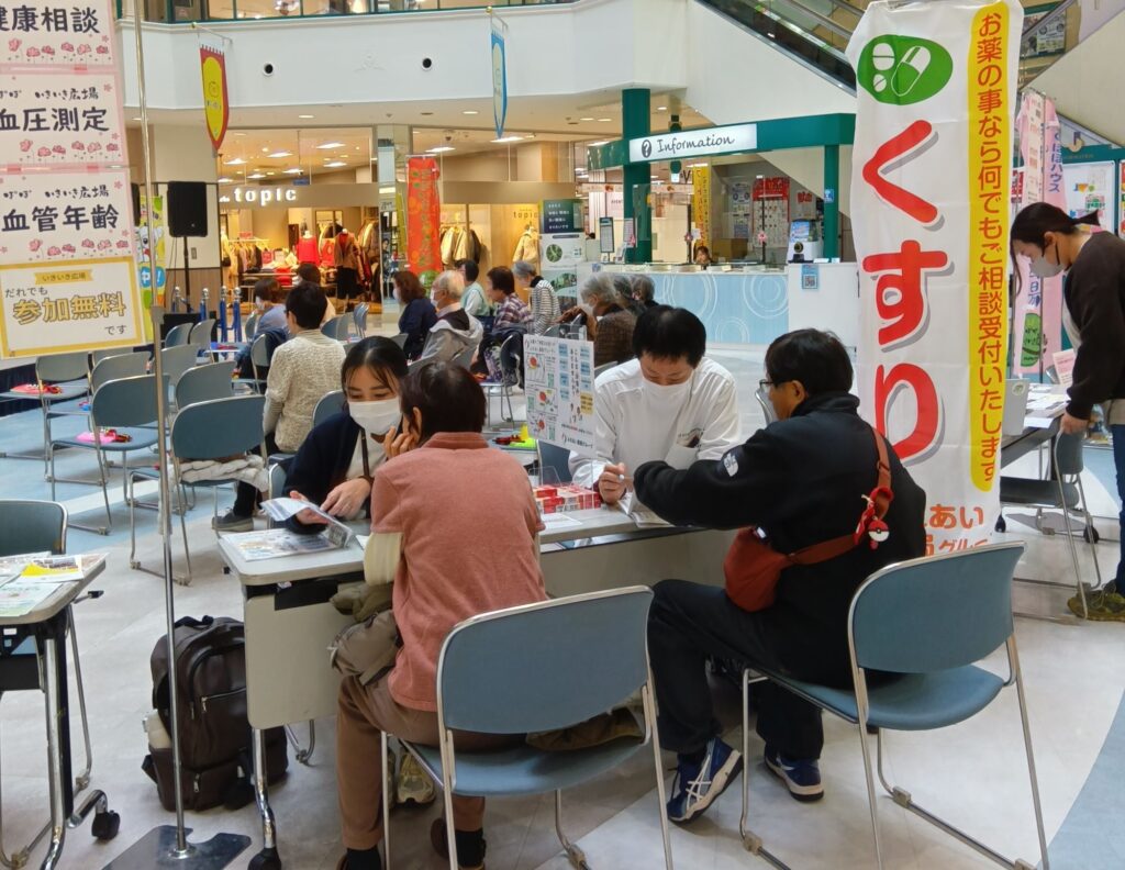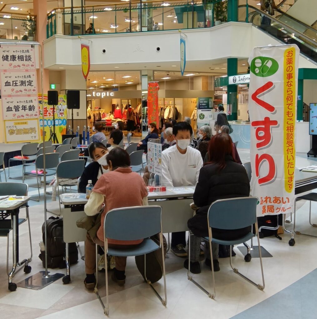 12月8日(月)、彦根市のNPO法人ぽぽハウスさんが主宰する『ぽぽ いきいき広場』に参加させていただきました!毎月ビバシティ彦根のセンタープラザで開催されているイベントです。リズム体操や彦根市で『育児と介護のダブルケア』を支える活動をされているサークルcoconiさんのお話、ハンドマッサージ、ベジチェック・・・そしてふれあい薬局としてお薬相談ブースを設置させていただきました。普段飲まれているお薬の事や血圧の不安など8名の方が相談に来てくださいました!普段は薬局の中で相談を受ける事がほとんどですが今回のように薬局の外に出て地域の方と交流を持てたことは薬剤師としてとても貴重な体験でした。次回は2026年2月に参加させていただきます!